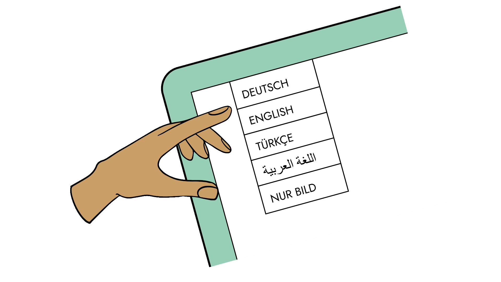 Each picture book is available in German, DGS, Arabic, English and Turkish. You can select or switch the language as desired.
