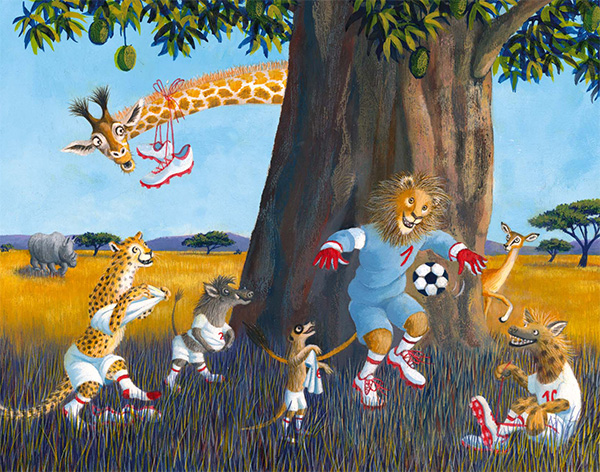 Begin your reading session with simple questions to stimulate the children’s interest, e.g. “Who likes football?” or “What can you find in a forest?” Point to details in the picture on the title page as a silent way to stimulate the children’s ideas.