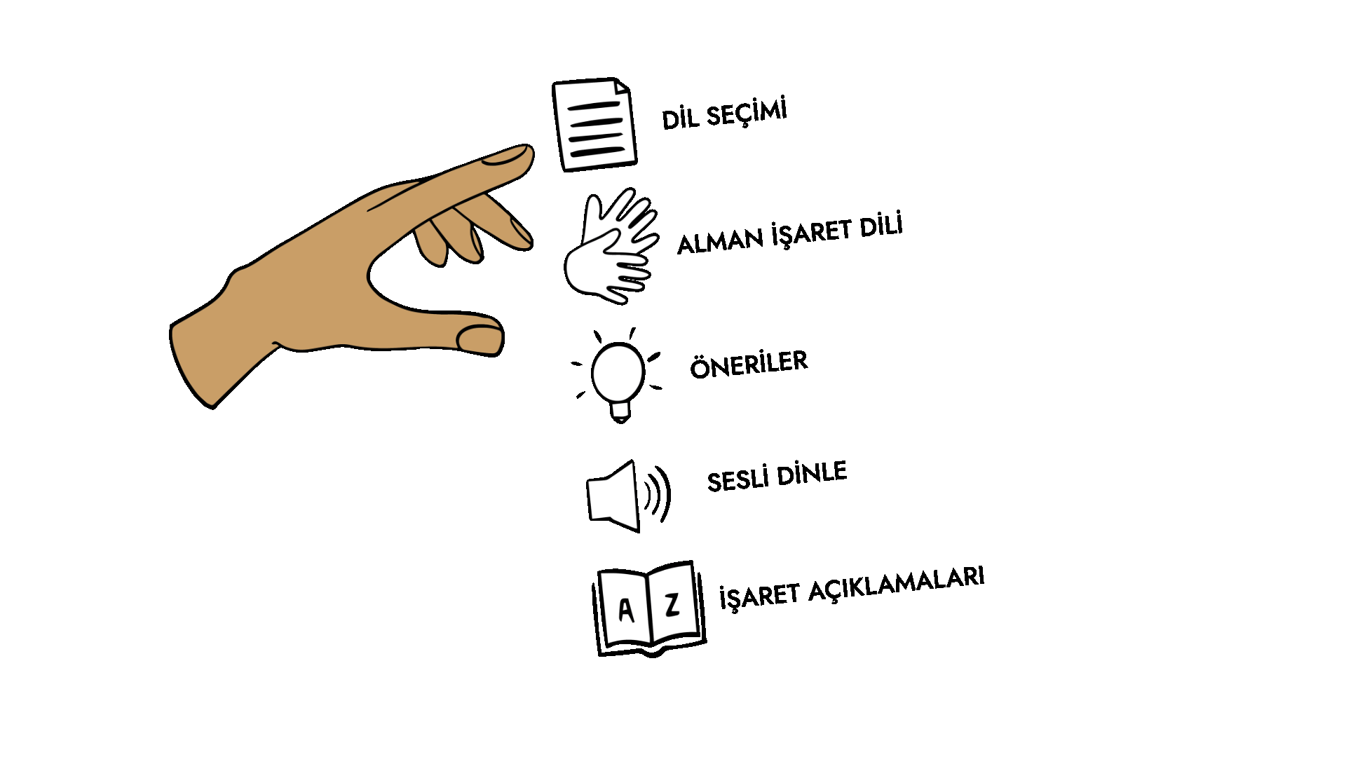Resimli kitapların tümünü Almanca, Alman İşaret Dilinde, Arapça, İngilizce ve Türkçe inceleyebilirsin. Dil seçimini kendin yapabilir ya da değiştirebilirsin.