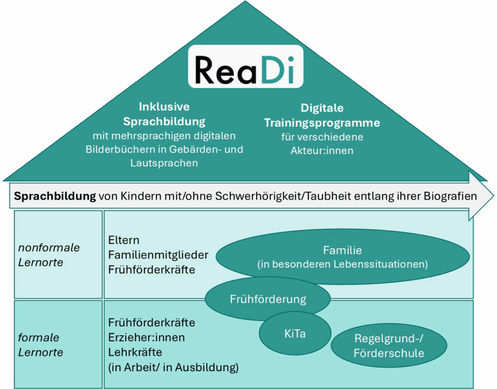 ReaDi: Reading Digital – Inklusive Sprachbildung mit mehrsprachigen digitalen Bilderbüchern in Laut- und Gebärdensprachen – ist ein Verbundprojekt der Humboldt-Universität zu Berlin und der Ludwig-Maximilians-Universität München. Es wurde von 2022–2026 aus Mitteln des Bundesministeriums für Bildung, Familie, Senioren, Frauen und Jugend unter dem Förderkennzeichen 01JM2205A/B gefördert.